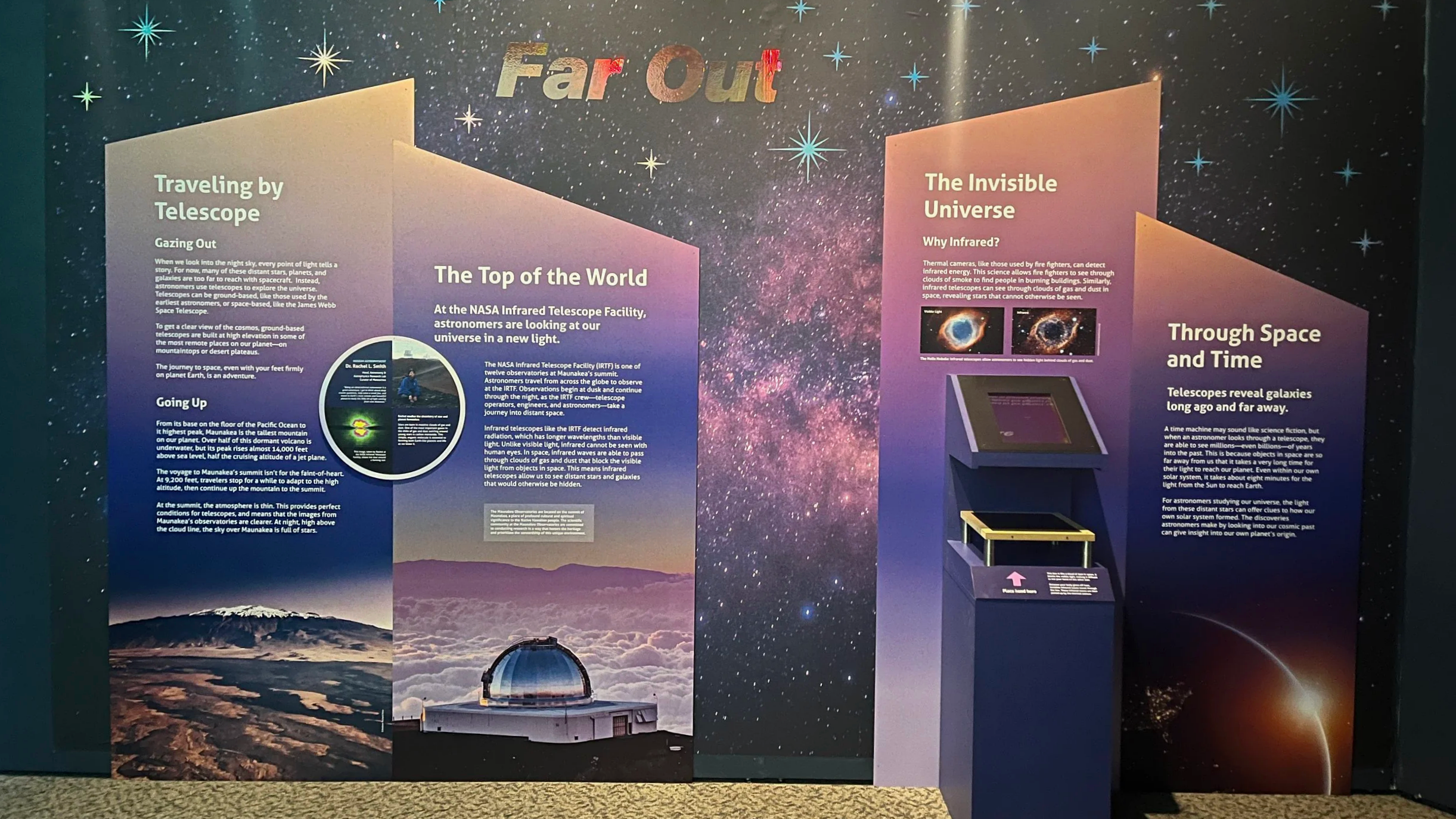 For this NCMNS Research Highlight, we featured the Museum’s Head of the Astronomy & Astrophysics Research Lab, Dr. Rachel Smith, and introduced visitors to the science behind NASA’s IRTF, the infrared telescope that Rachel uses to study stars in distant space. This exhibit addition, titled Far Out, featured a thermal camera interactive that demonstrated to the visitor how telescopes are able to “see” infrared waves, even through obstacles visible electromagnetic waves cannot pass through.